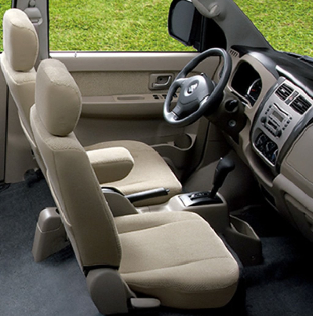 Las versiones GA/GE incluyen aire acondicionado, levantavidrios delanteros (y traseros en algunos mercados), sistema de audio JVC o pantalla de 8" con USB/Bluetooth y sensores de reversa en versiones superiores. Los materiales son duraderos con opciones de tapicería en tela o vinilo y amplias ventanas que favorecen una buena visibilidad